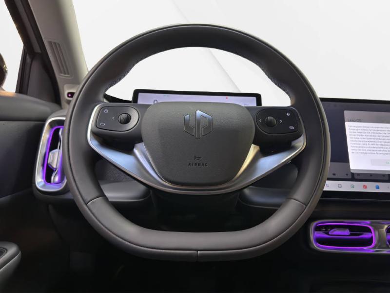Garantie Batterie/ 8 ans/ 150'000 km Keyless Start Lève-vitre électrique Rétroviseur extérieur réglable électriquement raba Rétroviseurs ext.dégivrants, réglables Senseur de pluie avec de l'essui-glace Toit panoramique Hayon électrique Privacy vitrage Vehicle to Load V2L On-Board Charger 11 kW Câble de charge Sistème d'assistance d'éclairage (fonc. coming-home) Jantes en alliage léger 18" Airbags conducteur et passager Désactivation de l'airbag passager Airbags latéraux conducteur et passager Airbags de tête Kollisionswarnsystem Assistant projecteurs Système d'alerte angle mort Assistant de tenue de voie LKA Assistance freinage d'urgence autonomie Détecteur de fatigue (Tiredness detection) Fixation Isofix pour siège enfant Régulateur de vitesse adaptable ACC Caméra 360° Frontkamera Système Caméra Surround Détecteurs de pression des pneus TPMS eCall LED Phares de jour Phares à LED (diodes électroluminescentes) Phares anti-brouillard à LED Feux arrière à LED ABS et répartiteur électronique de force de freinage EBV Contrôle électronique de stabilité ESP Climatisation automatique Pompe à chaleur Multifonctions pour volant Lenkradheizung Lenkrad in Kunstleder Revêtement de sièges en simili-cuir Sièges AV avec ventilation Sièges avant chauffants Dossiers arrière rabattables séparément 60:40 Sièges avant électriques Volant réglable 12 V Steckdose Éclairage d'ambiance Radio DAB (radio accoustique digitale) Connexion USB Système de navigation WLAN-Hot Spot (Connection internet sans fil) Apple Car Play/ Android Auto Système Bluetooth Wireless Charging pour terminaux mobiles Détails selon liste de prix valide de l'importateu Aucune garantie sur l'exactitude de l'équipement d