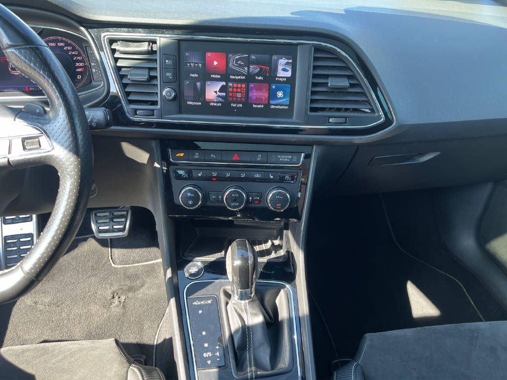Zentralverriegelung mit Fernbedienung Start + Stopp Funktion Elektrische Fensterheber vorne + hinten Aussenspiegel elektrisch verstellbar/ heizbar und anklappbar Régulateur de vitesse Regen- und Lichtsensor Abgedunkelte Scheiben ab B-Säule Lichtassistenzsystem (Coming-Home Funktion) Doppel Endrohr Auspuffanlage Heckspoiler Dachreling schwarz Einstiegsleisten beleuchtet Leichtmetallfelgen 19" Reserverad platzsparend Bremssättel rot lackiert Progressiv Lenkung Adaptive Fahrwerksregelung DCC Airbag Fahrer und Beifahrerseite Deaktivierung Beifahrerairbag Knieairbag Fahrer Seitenairbag Fahrer und Beifahrerseite Kopfairbag vorne und hinten Müdigkeitserkennung Kindersitzverankerung ISOFIX hinten Einparkhilfe hinten LED Tagfahrlicht LED-Scheinwerfer LED-Nebelscheinwerfer ABS und EBV Elektr. Bremskraftverteilung Differentialsperre TCS Elektronische Traktionskontrolle ESP/ DSR/ EBA/ RDK Zwei Zonen-Klimaanlage Climatronic Dekoreinlagen in Chrom Schaltwippen am Lenkrad Multifunktionslenkrad Leder Sportsitze - Alcantara Vordersitze höhenverstellbar Sièges avant chauffants Rücksitzlehne geteilt 1/3 oder 2/3 / umklappbar Automatisch abblendbarer Innenspiegel LED Innenraumbeleuchtung Doppelter Ladeboden Radio/ CD/ MP3 DAB+ Digital Audio Broadcast USB-Schnittstelle Touchscreen-Bildschirm Mobiltelefon Freisprechanlage/ Bluetooth Seat Media System Plus Keine Gewähr auf die Angaben der Serienausstattungen