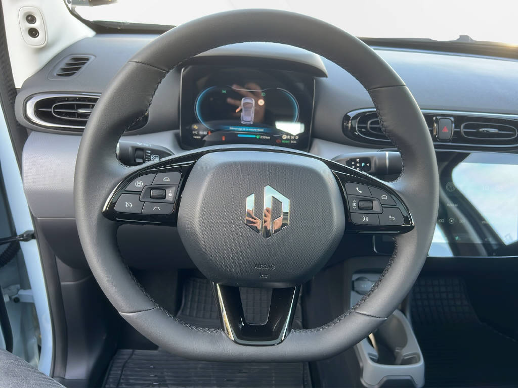 Garantie 5 ans/ 200'000 km Garantie Batterie/ 8 ans/ 160'000 km Keyless Start Lève-vitres électrique avant et arrière Rétroviseur extérieur réglable électriquement et chauffant Toit panoramique Câble de charge Jantes en alliage léger 15" Kit de secours pour pneumatique Frein de stationnement électrique Direction assistée électronique Sélection du profil de conduite Airbags conducteur et passager Airbags latéraux conducteur et passager Airbags rideaux avant et arrière Système d'alerte anti-collision Système d'alerte angle mort Avertisseur de tenue de voie Assistant de tenue de voie LKA Assistance freinage d'urgence autonomie Détecteur de fatigue (Tiredness detection) Fixation Isofix pour siège enfant Régulateur de vitesse adaptif ACC Assistance de parc arrière Caméra de recul Détecteurs de pression des pneus TPMS LED phares de jour Feux arrière à LED ABS et répartiteur électronique de force de freinage EBV Contrôle électronique de stabilité ESP Climatisation automatique Multifonctions pour volant Siège conducteur réglage 6-positions Siège passager réglable en 4-positions Prise 12V Récepteur radio digital DAB+ Commande vocale 2 Connexions USB-C Système de navigation Système Bluetooth Détails selon liste de prix valide de l'importateur Aucune garantie sur l'exactitude de l'équipement de série