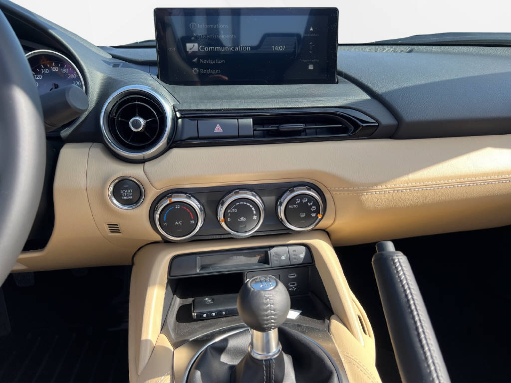 MarqueMazdaModèleMX-5 1.5 KazariNuméro interne117013Kilométrage0 kmAnnée2025Nombre de portes2Poids à vide1078 kgPuissance du moteur à combustion132 cvCylindrée1496 cm3Boîte à vitesseManuelleRoues motricesArrièreCarburantEssence cat.TypeVéhicule neufCouleurArctic WhiteNombre de sièges2Nbr. de Cylindre4ExpertiséOui